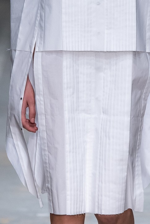 칼라, 앞여밈, 커프스, 소매 주름, 밑 단 등의 매혹적인 커팅이 특징인 셔츠 드레스