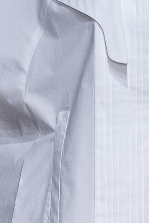 허리 절개 없이 루스 핏으로 디자인하여 어느 체형에나 어울리는 디자인의 드레스 셔츠