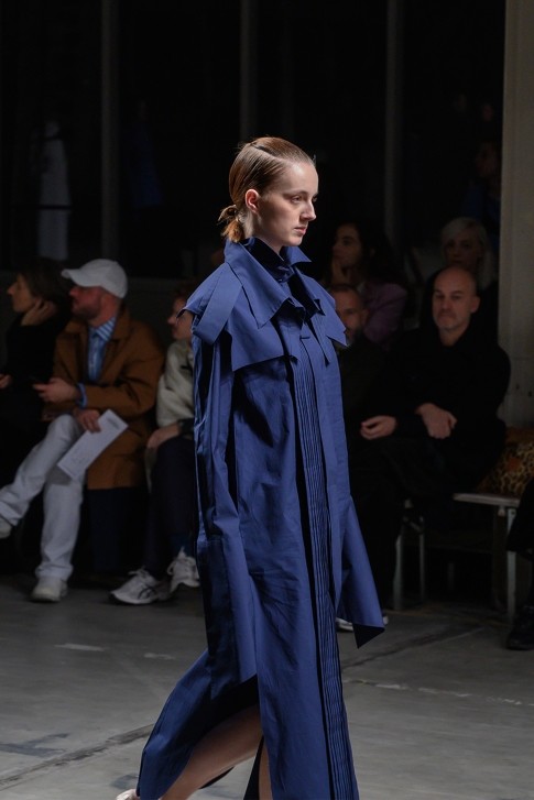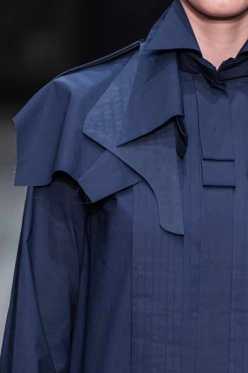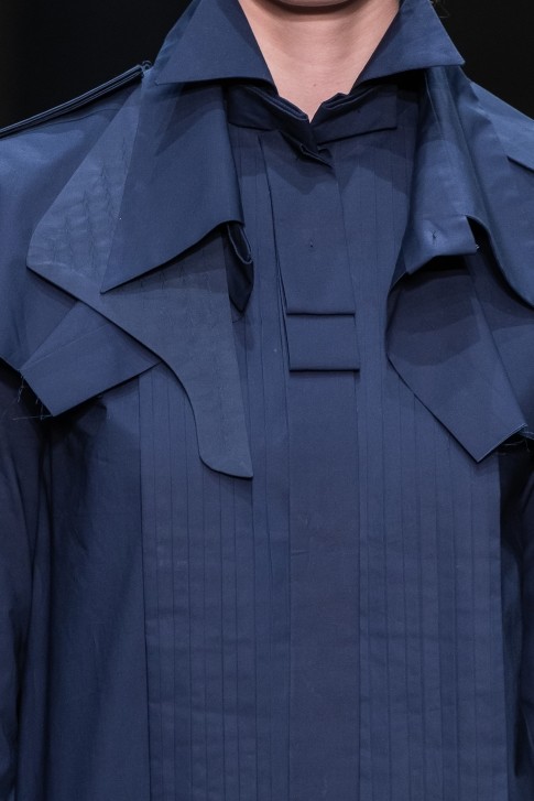 칼라, 앞여밈, 커프스, 소매 주름, 밑 단 등의 매혹적인 커팅이 특징인 셔츠 드레스
