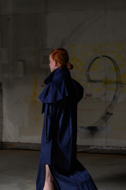 사각형의 면을 접기 방식만으로 디자인한 제품으로 커팅 라인이 없는 소매와 바디라인이 특징인 드레스