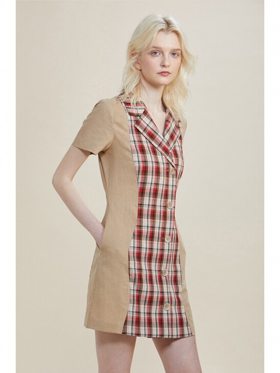 • 체크 배색의 시원한 린넨 혼방 원단으로 이루어진 데일리 반팔 원피스