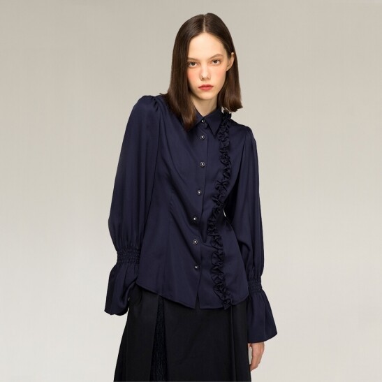 퍼프소매가 사랑스러운 매력을 더한 캐주얼하면서 고급스러운 분위기의 블라우스