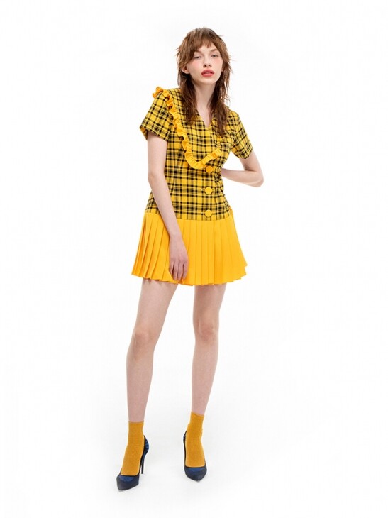 • 언밸런스 카라 디자인의 드레스로 스포티하면서 유니크한 프레피룩 스타일의 플리츠 드레스