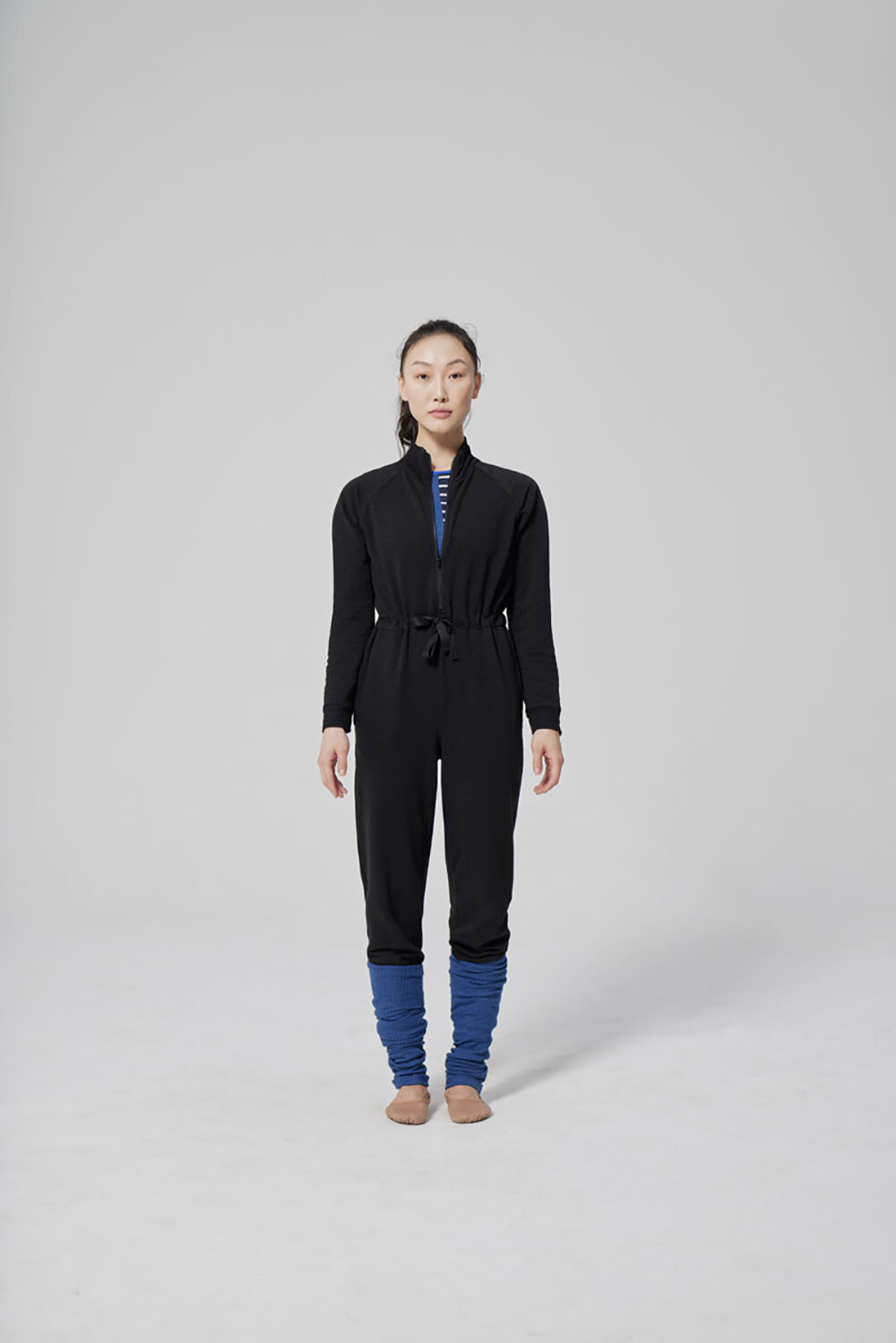 – 발목과 목에 둘러진 밴드(rib knit)로 슬림한 라인 연출(터틀넥 & 기본카라 두 가지로 연출가능)
