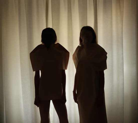 사각형의 면을 접기 방식만으로 디자인한 제품으로 커팅 라인이 없는 소매와 바디라인이 특징인 디자인입니다.